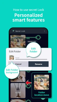 - Provides a lock function for each folder. Set the password and lock it with a key.