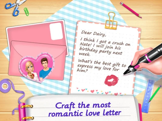 Who is your secret crush? How are you feeling today? Who is your perfect match? Every girl has a dreaming diary for herself. Ava got a crush on her classmate Nate and wrote all her little secret in the magic diary! But she didn’t know how to tell Nate her feeling. This is her first love! Let’s help the sweetheart rewrite her destiny by dressing and styling her for Nate’s birthday party! Don't forget to lock your diary so no one can peek inside! Shhhhh...