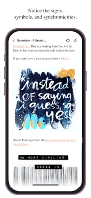 Discover your inner magic with our app, designed for the creative and curious soul. Each day unveils a new secret message to contemplate, paired with guided prompts for journaling, creativity, and deeper self-reflection.