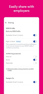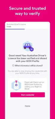 Your Control: Verifying with SEEK Pass is free and optional. You control your data and can choose to share or unshare your credentials with your SEEK profile at any time.