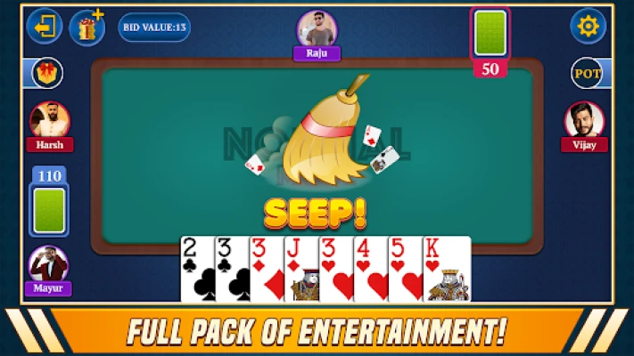 Seep is normally played by four people in fixed partnerships of two with partners sitting opposite one another. The deal and play are counter-clockwise.