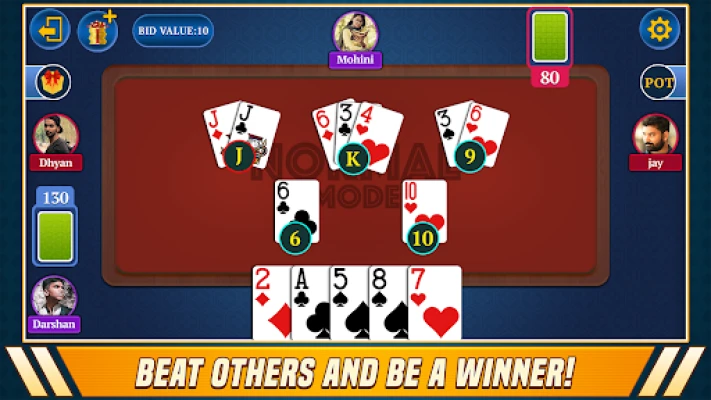 The aim of the game is to capture cards worth points from a layout on the table (also known as the floor). The game ends when one team has accumulated a lead of at least 100 points over the other team (this is called a baazi).