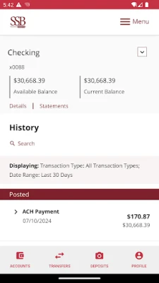 Accounts: Check your available balances and recent transactions for your checking and savings accounts.