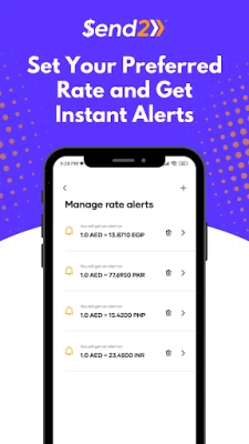 Set alerts for rate changes or when your desired exchange rate becomes available.
