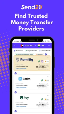 Send2 helps you easily compare rates, fees, and transfer speeds across leading money transfer providers — so you can get the best value for every dirham you send.