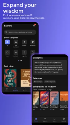 Category Filtering: Browse by personal development, finance, health, leadership, and more.