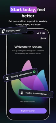Seruna is your personal mood & emotion coach with 5-minute daily sessions that turn science-backed tools (CBT, mindfulness, habit design) into simple, actionable steps. Follow tracks → milestones → steps to build real skills without overwhelm.