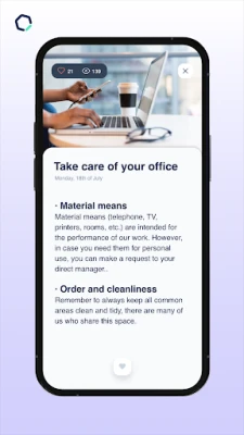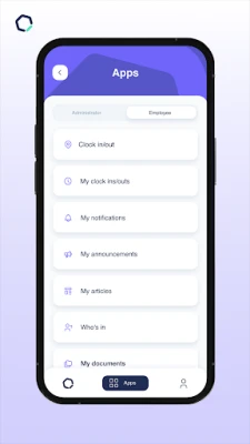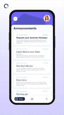 Intuitive and visual home screen with access to your most used apps and your company’s announcements