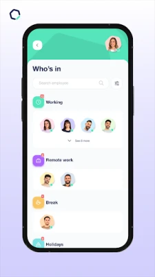 Who’s in: you will be able to know which of your colleagues are in the office, working remotely or on a break