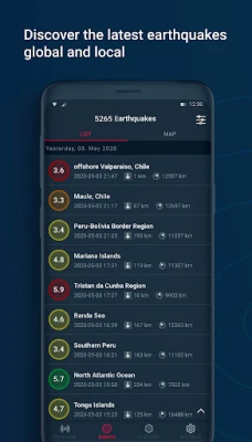 ✔ See the latest earthquake events from around the globe, e.g., magnitudes, depth and more