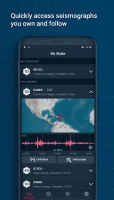 ✔ Follow stations to view live waveforms in addition to your own Shake