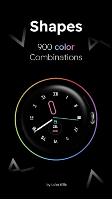 Shapes is a minimal Wear OS watch face, which replaces conventional indices with triangular shapes.