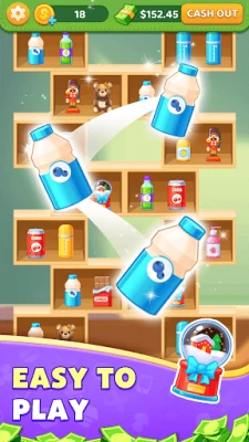 Step into a world of satisfying organization and relaxing puzzle fun! Immerse yourself in the unique challenge of clearing a crowded shelf by matching everyday items, with the exciting chance to earn real cash rewards as you play.