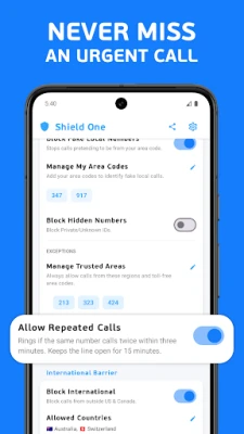 • Emergency Bypass: Safety first. If a blocked number calls twice within 3 minutes, Shield One recognizes it as a potential emergency and lets it ring through.