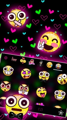 🔥 Shiny Neon Hearts Colorful Keyboard Various Colors, Emojis & Kaomojis