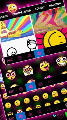 The Shiny Neon Hearts emoji keyboard is easy to use with a strong AI engine: