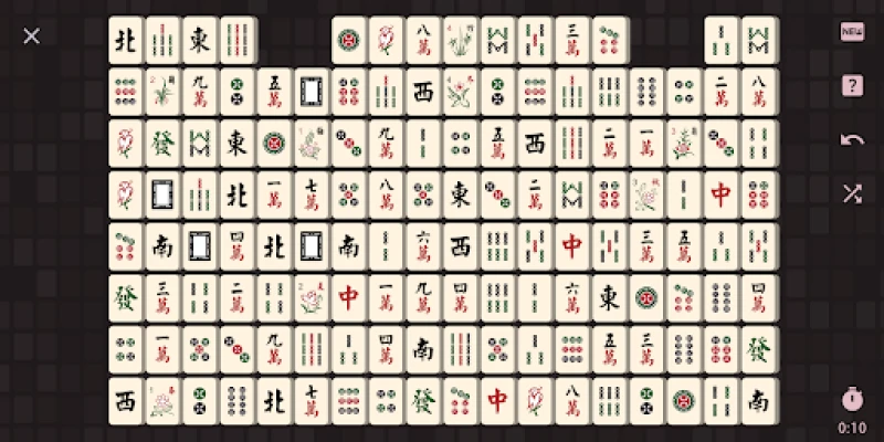 Shisen-Sho, (also known as Four Rivers or Rivers) is a solitaire-like game where you need to clear the board by matching tiles in pairs.