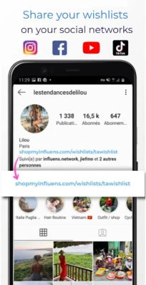 Share the link of your wishlists and products with your followers, friends and family (you can share the URL of your wishlist on: your BIO, your swipe-up link, your posts, or messages ...)