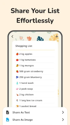 📤 Share Lists Easily - Export your shopping list as an image or text file. Share it with family, friends, or roommates for a smoother and more collaborative shopping experience.