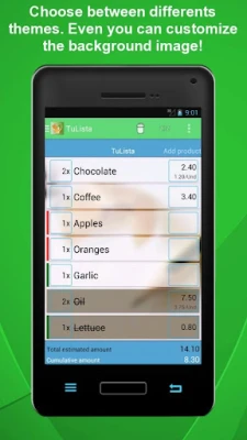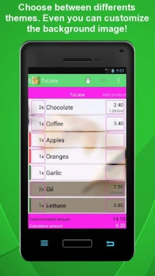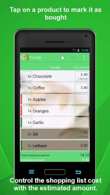 TuListaPro provides a clear interface with which you are able to add the products that you need to buy. While you are shopping, you can interact with the list by marking the products you have added to your basket. TuLista displays the products you still have to buy first, and crosses out those which you have already added to your basket.