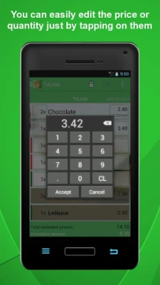 As you add products to your basket, as well as marking the product as purchased you can easily indicate the price per unit of an item and therefore calculate the current accumulated cost of the items in your basket.