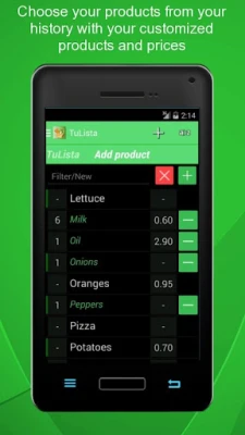 Products which you have added previously are saved in the history along with the prices you indicated for them, so they are easy to add the next time you go shopping.