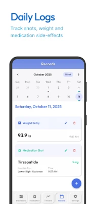 • Log your GLP-1 injections with details on dose, timing, and injection site