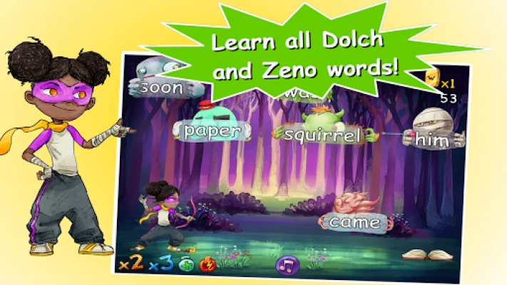 All sight words have been stolen by the forest witch. Your kid is put in the role of a sight word superhero that needs to save sight words and collect them, which awakens the imagination and the desire to learn.