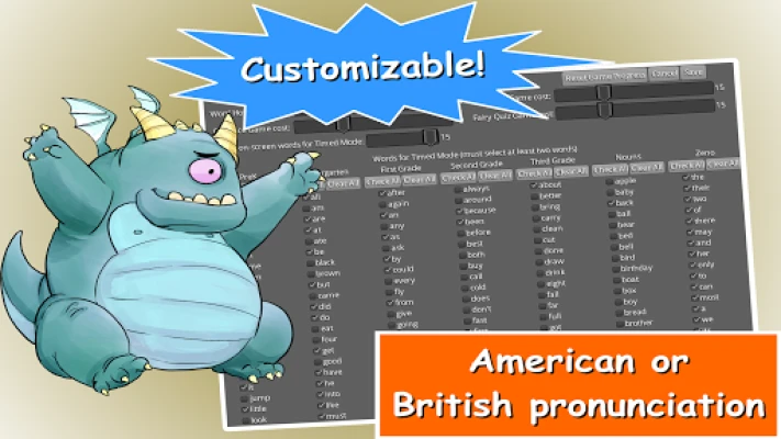 Our learning sight words game is professionally narrated by two voices. Pick between an American boy's voice and a British woman's voice and help your kid learn the right pronunciation.