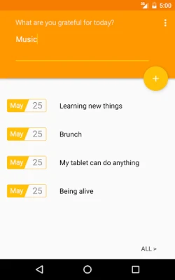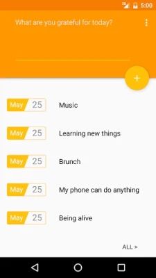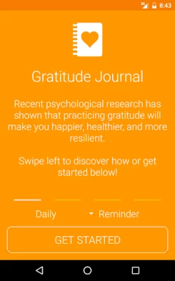 This app is designed to be the easiest, simplest way to maintain a gratitude journal. Write a few things you're grateful for each day and then whenever you need a reminder of the good things in life, you can pull up this app and reflect on your blessings. You can even set a customizable notification to prompt you to take the time to be grateful.