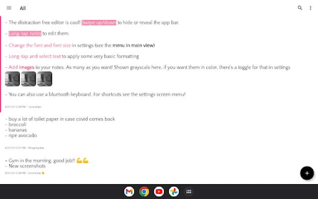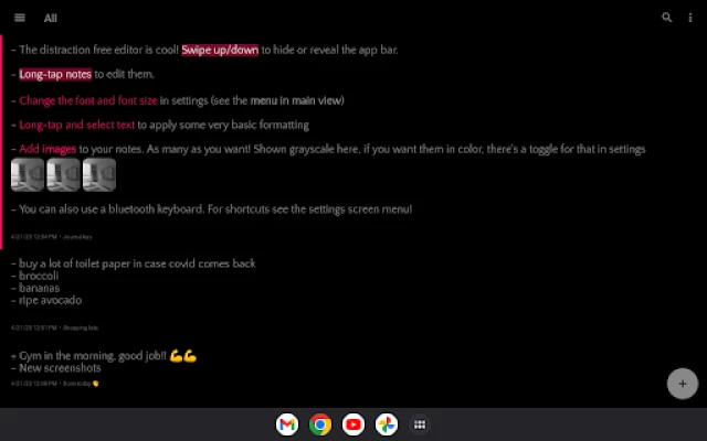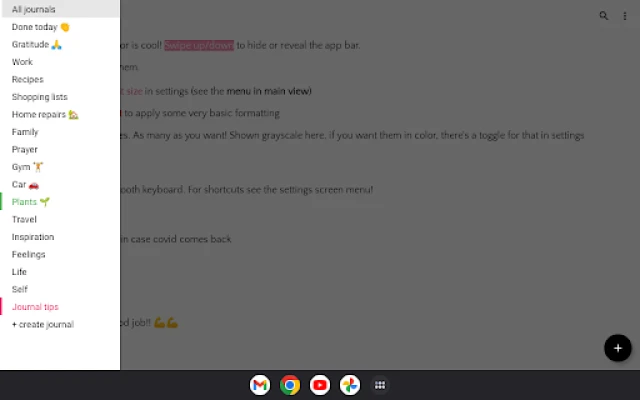 🌼 Delete an entry? In the editor, swipe down for menu (delete through menu)