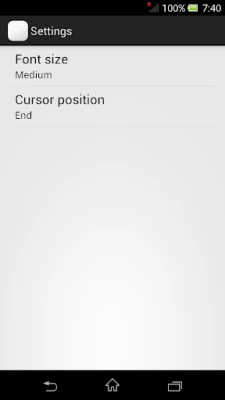 In the setting screen, you can change font size and position of the cursor in the editor.