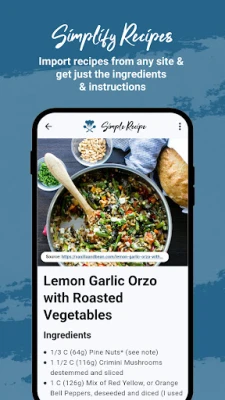 Keep all of your recipes organized in one place. With this recipe keeper app, you can import your favorite recipes from the web by pasting in the URL, or manually add family recipes that don't exist online. Once your recipes are imported, you can organize them into curated cookbooks or tag them for easy filtering.