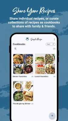 Recipes were made for sharing, and Simple Recipe lets you easily share a recipe or a collection of recipes with friends and family. Convenient share links allow recipes to be imported with one click.