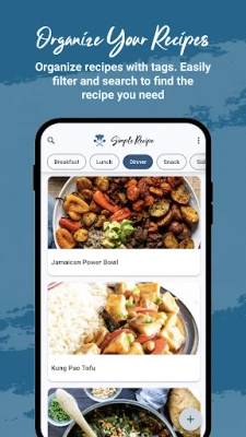 You can organize and sort through all your saved recipes with tags and a search bar to easily find the recipe you're looking for. Add your own custom tags to organize and filter your recipes any way you'd like.