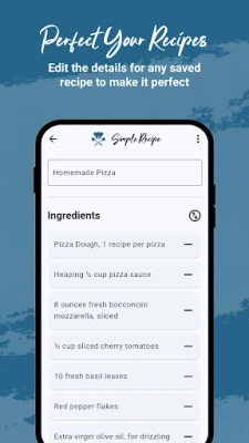 You'll no longer have to keep mental notes on your recipe modifications. Edit any part of your saved recipe (title, ingredients, instructions, image) to perfect each recipe so that they perfectly match your personal preferences and dietary restrictions.
