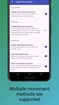 With tons of customization options, you can tweak the rules of each game to fit your style and change up the look with different backgrounds, card designs, and text colors. You can even enable Left-Handed mode, which adjusts the layout for left-handed play, or switch on 4-color mode for easier gameplay with red, black, green, and blue suits.