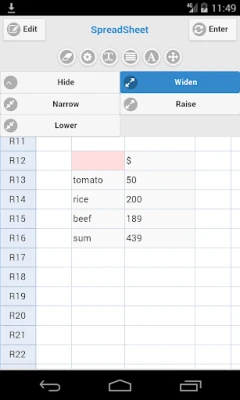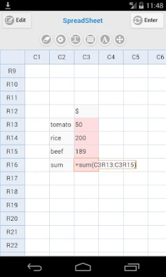 "Simple Spreadsheet" is an intuitive and very easy to use spreadsheet application specialized for smartphones and tablet devices. It can be used instead of a calculator, and be available for simple summary work such as household account book and gaming point record, schedule memo etc.