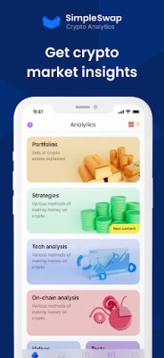 Download SimpleSwap, the ultimate crypto analytics app, and embark on a journey of crypto learning and trading. Explore Ethereum, Bitcoin, and other cryptocurrencies. Learn, trade, and grow your knowledge within the dynamic crypto market.