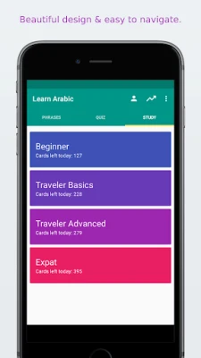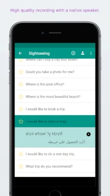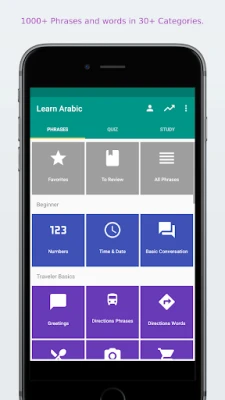 All Arabic phrases and words are presented to you in both phonetic and original Arabic writing. They are recorded by a native speaker from arabic countries.