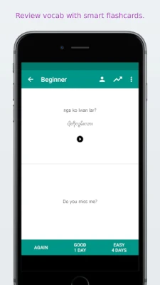 All Burmese phrases and words are presented to you in both phonetic and original Burmese writing. They are recorded by a native speaker from Myanmar.