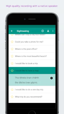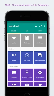 All Greek phrases and words are presented to you in both phonetic and original Greek writing. They are recorded by a native speaker from Greece.