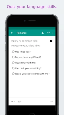 ✓ Adjust the quiz and flashcards settings for Greek to English, English to Greek