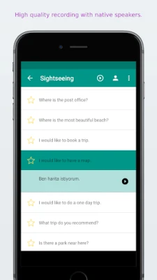 All Turkish phrases and words are presented to you in both phonetic and original Turkish writing. They are recorded by a native speaker from Turkey.