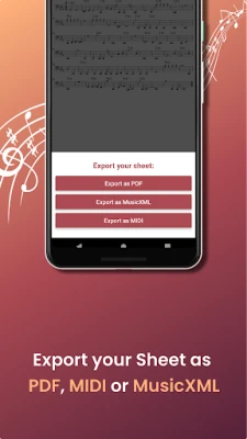 With the Melody Scanner App you can create on-the-go recordings of your instrument. Those are uploaded to your personal cloud songbook and transcribed to score.