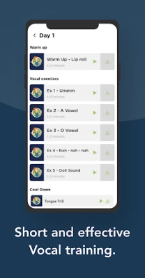 Our app includes practice tracks, Vocal exercises, vocal warm up, vocal cool down, pitch training, guess the note exercises, vocal drills, pitch test, pitch practice, ear test, ear training and more.