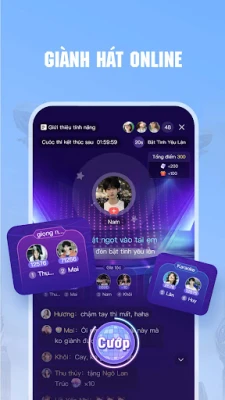- Cướp Mic Giành Hát, trở thành vua kara game âm nhạc, có đủ tất cả thể loại nhạc, còn có thể cùng bạn bè trong gia tộc lập đội chơi cùng nhau!
