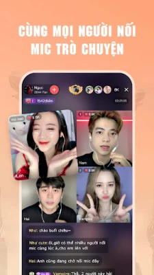 - Phòng giải trí: 8 người cùng kết nối voice chat, cùng ca hát, kết bạn, livestream nói chuyện thỏa thích!