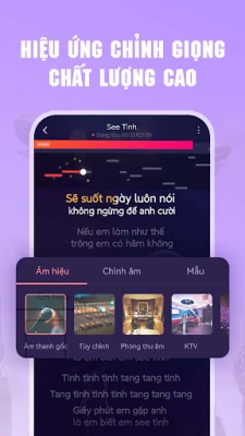 - App có tính năng chấm điểm giọng hát, sẽ hỗ trợ bạn trong việc luyện hát, ngoài ra còn có thể chỉnh giọng hát như Wesing, kết hợp sử dụng hiệu nhiều ứng âm thanh trên app!