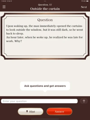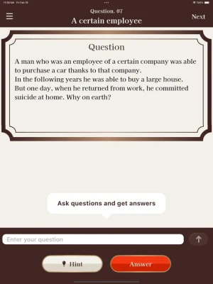 It's time to test your thinking skills with the "Situation Puzzle".This free game app is a Situation Puzzle app that is different from traditional quiz games.The key to this game is to go beyond just the surface of a problem and find surprising connections and hidden facts behind it.